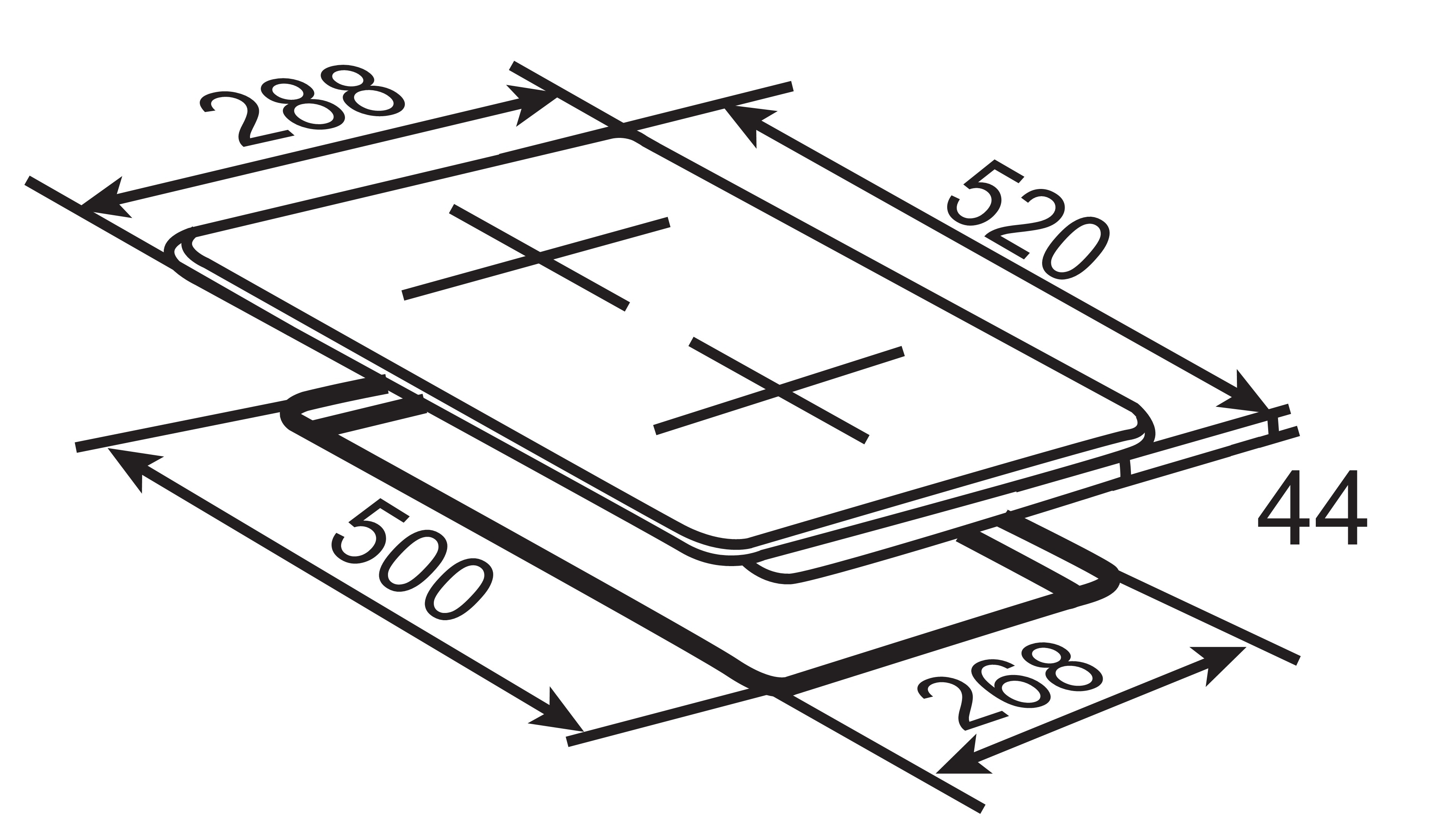 - Abmessung Kochfeld H X B X T in cm: 5,30 x 28,80 x 52,00