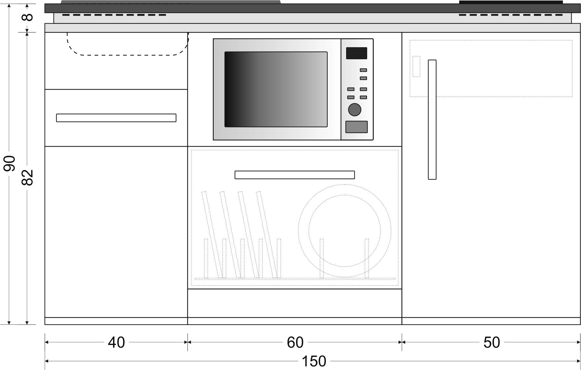 Produktinformationen "Miniküche Designline MDGSM 150 - Mit Geschirrspüler - Mikrowelle"