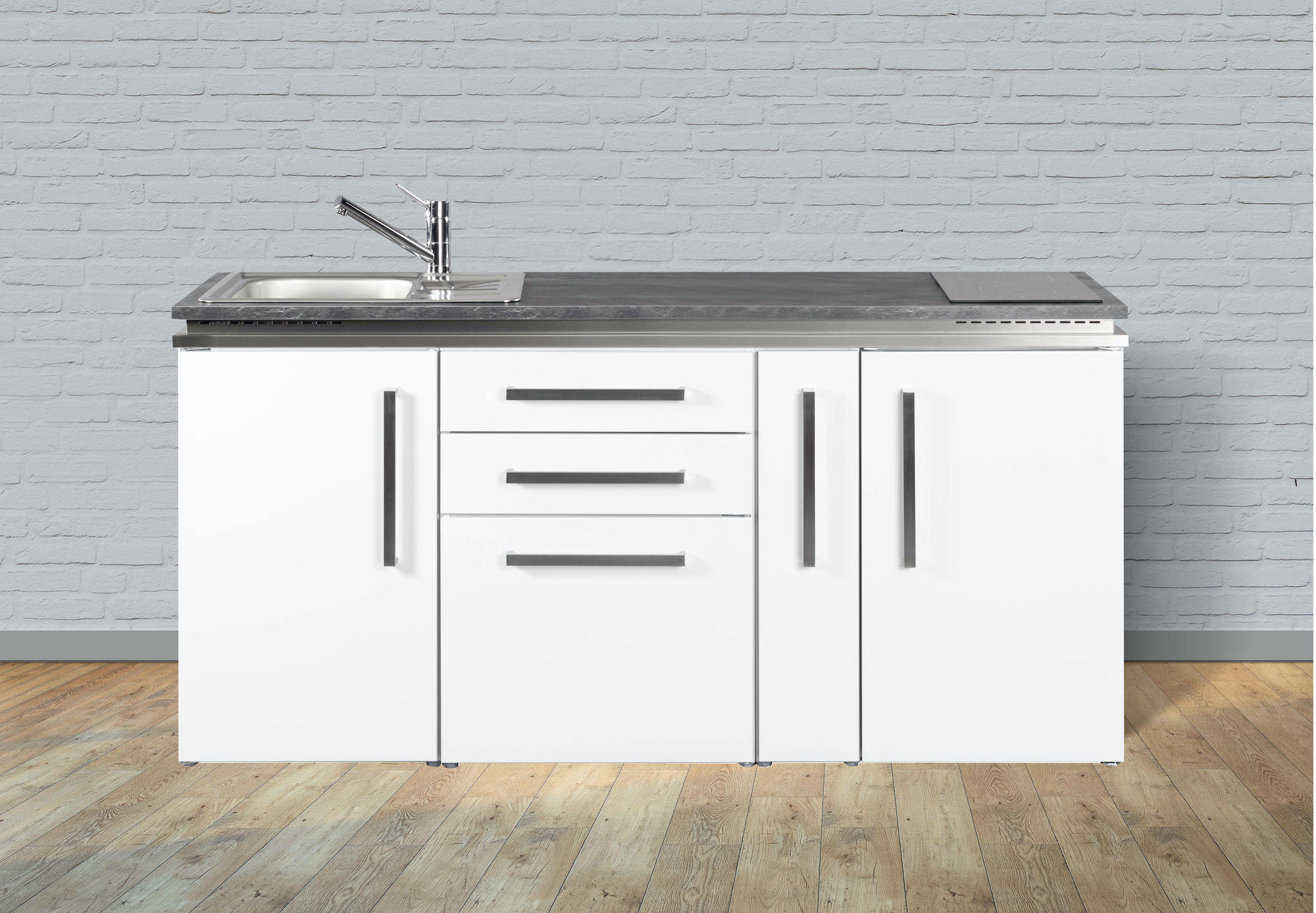 Schickes Design für Apartments mit hohem Anspruch durch moderne und zeitlose Optik. Die einzigartige Konstruktion der Design-Arbeitsplatten lässt die Küche zu etwas ganz Besonderem werden. Die Designline Modelle werden durch die Möglichkeit von Mikrowelle, Geschirrspüler und Backofen zur vollwertigen Küche. Verfügbar in den Breiten 150, 160, 170 und 180 cm.
