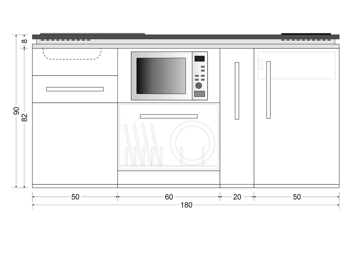 Produktinformationen "Miniküche Designline MDGSM 180 A - Mit Mikrowelle - Geschirrspüler - Apothekerauszug - Schublade"