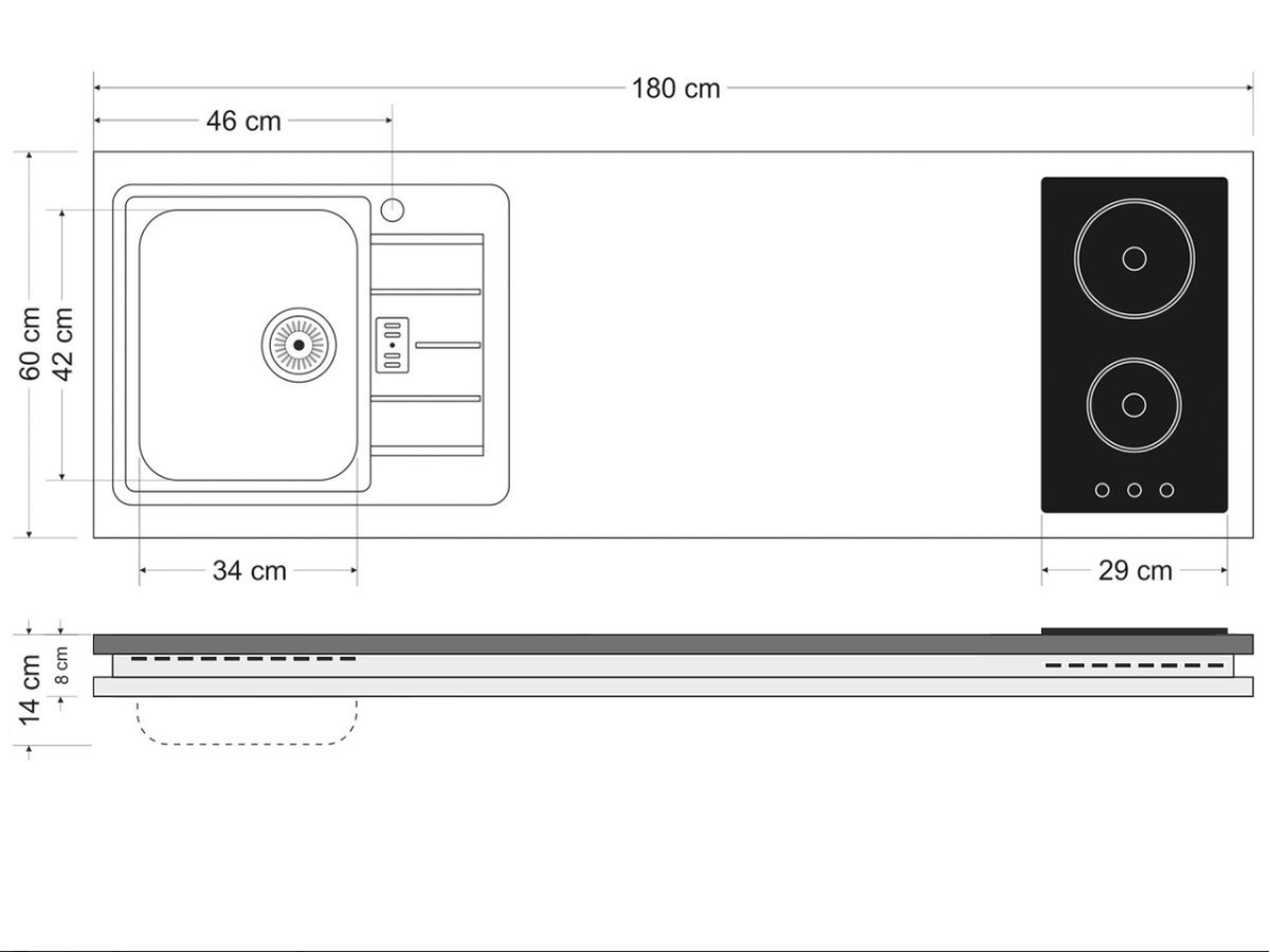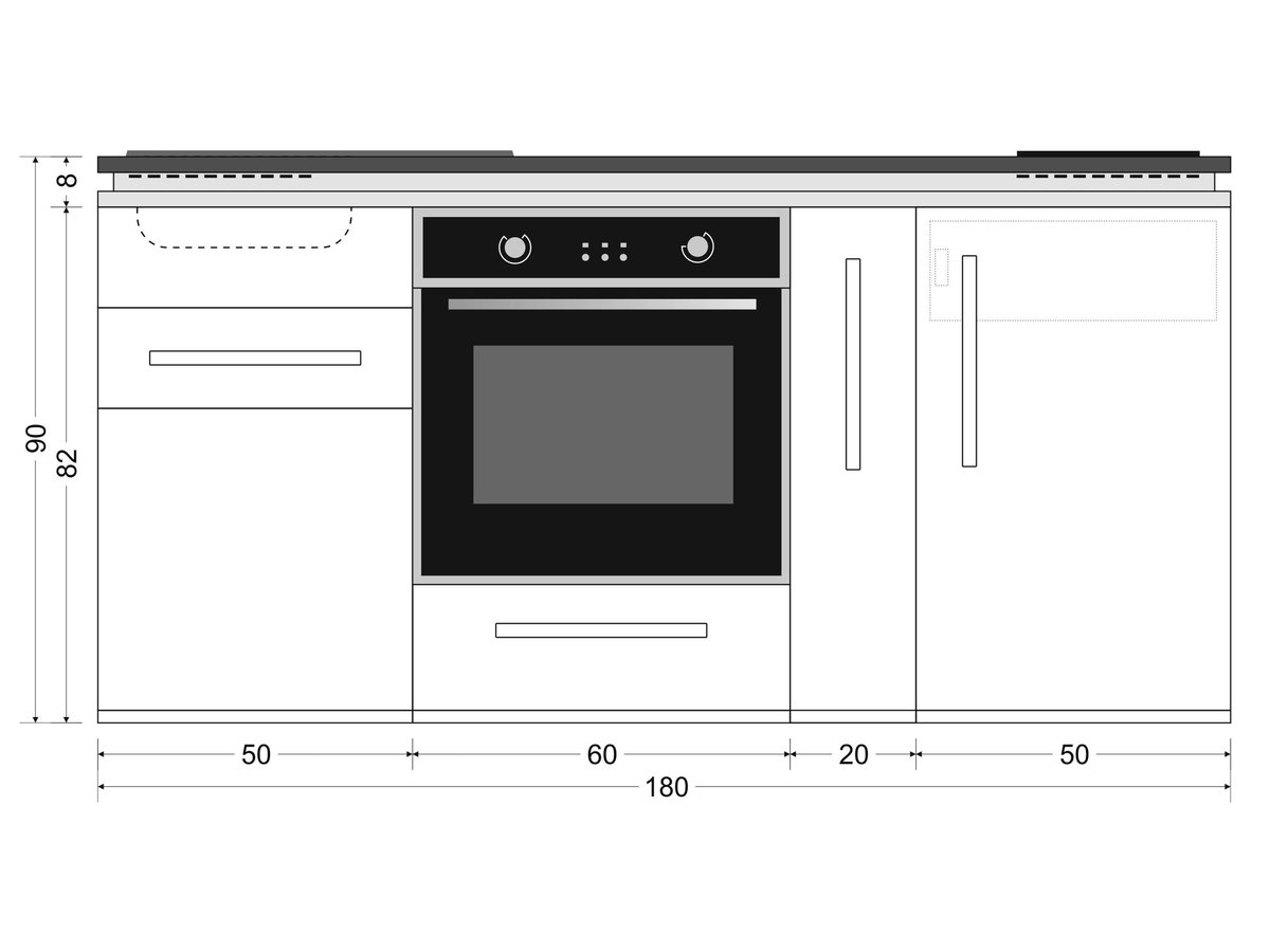 Produktinformationen "Miniküche Designline MDB 180 A - Mit Backofen - Apothekerauszug - Schublade"