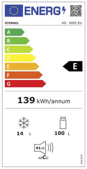 Optional kann die Miniküche MDB 180 A anstatt des 500 mm Unterbaus (Außen), mit dem Kühlschrank Stengel KS 5002 EU, mit der Energieeffizienzklasse E und einem 4* Gefrierfach, konfiguriert werden. Der Kühlschrank der Miniküche MDB 180 A verfügt über eine pulverbeschichtete Metallverkleidung mit Griff.