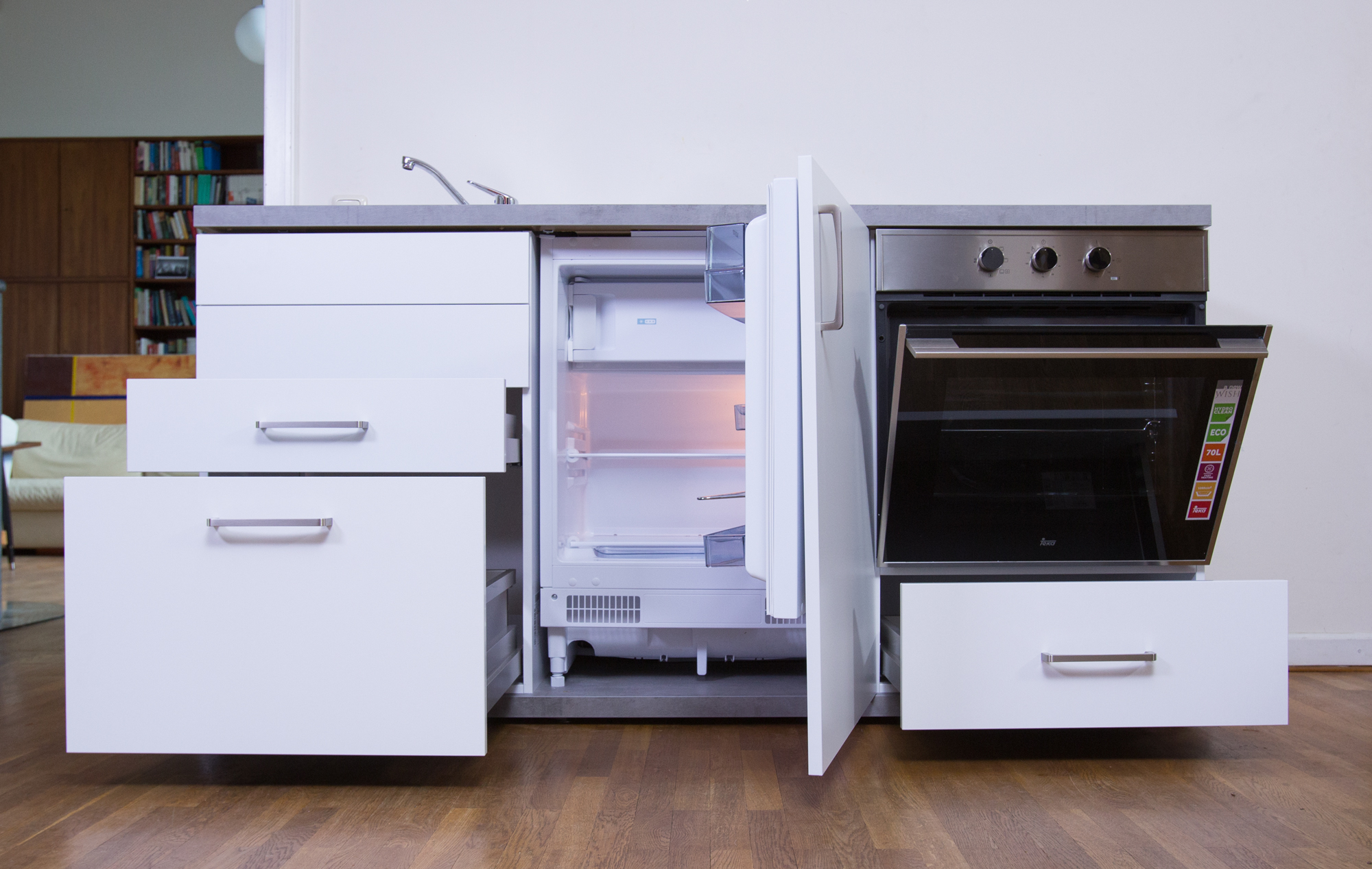 Ausstattung: | Backofen, Kochfeld, Kühlschrank, Schublade |