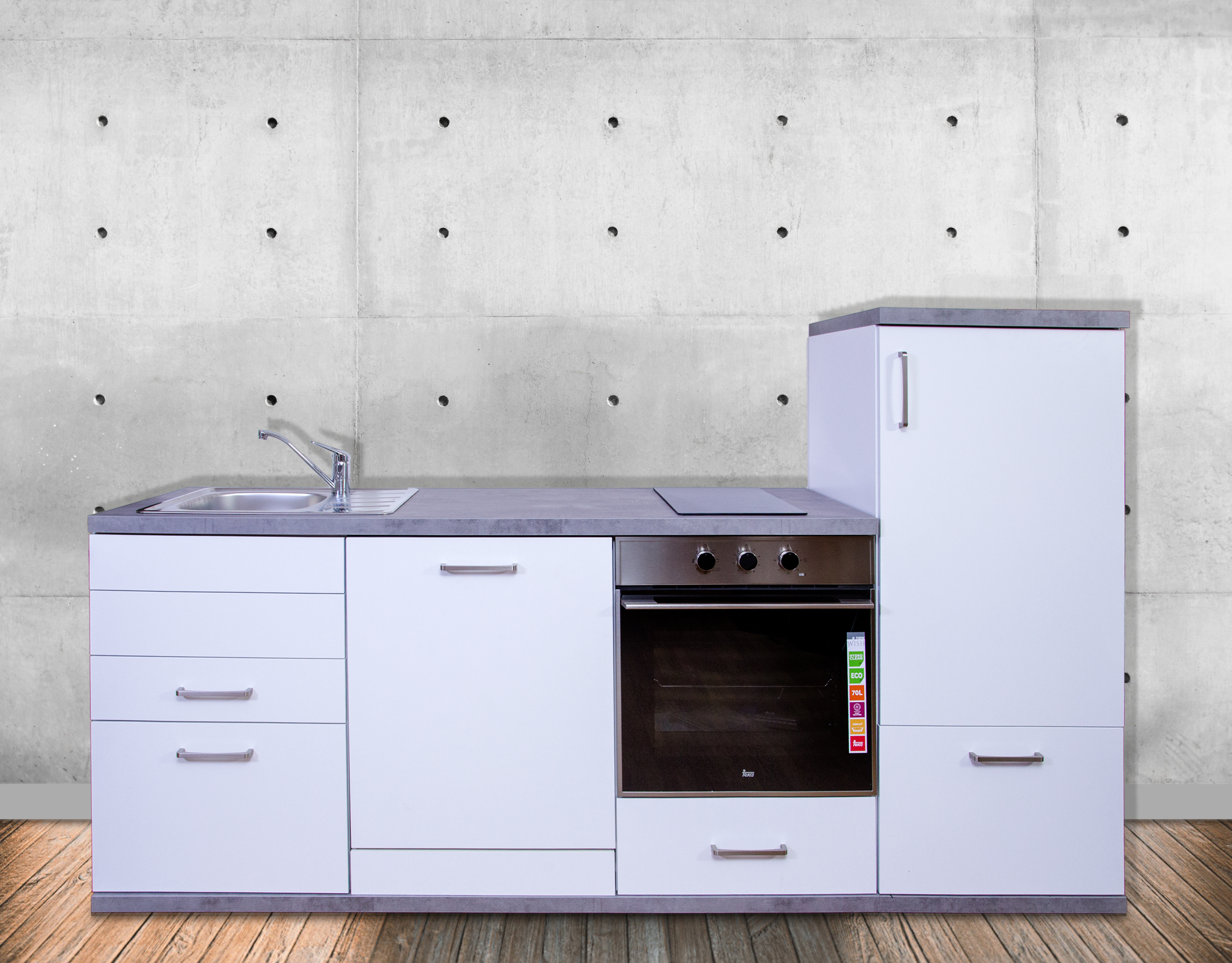 Die Miniküchen der Serie MKMS werden individuell nach Ihrer Konfiguration produziert und gemäß ihrer Auswahl vormontiert oder teilzerlegt ausgeliefert. Die Abbildung dient nur der Illustration. Bei Fragen zum Produkt sprechen sie gerne unsere Küchenexperten an - wir sind über das Kontaktformular oder auch telefonisch für Sie da. Sofern nicht anders beschrieben: Lieferung gemäß gewählter Konfiguration und ohne Dekoration.