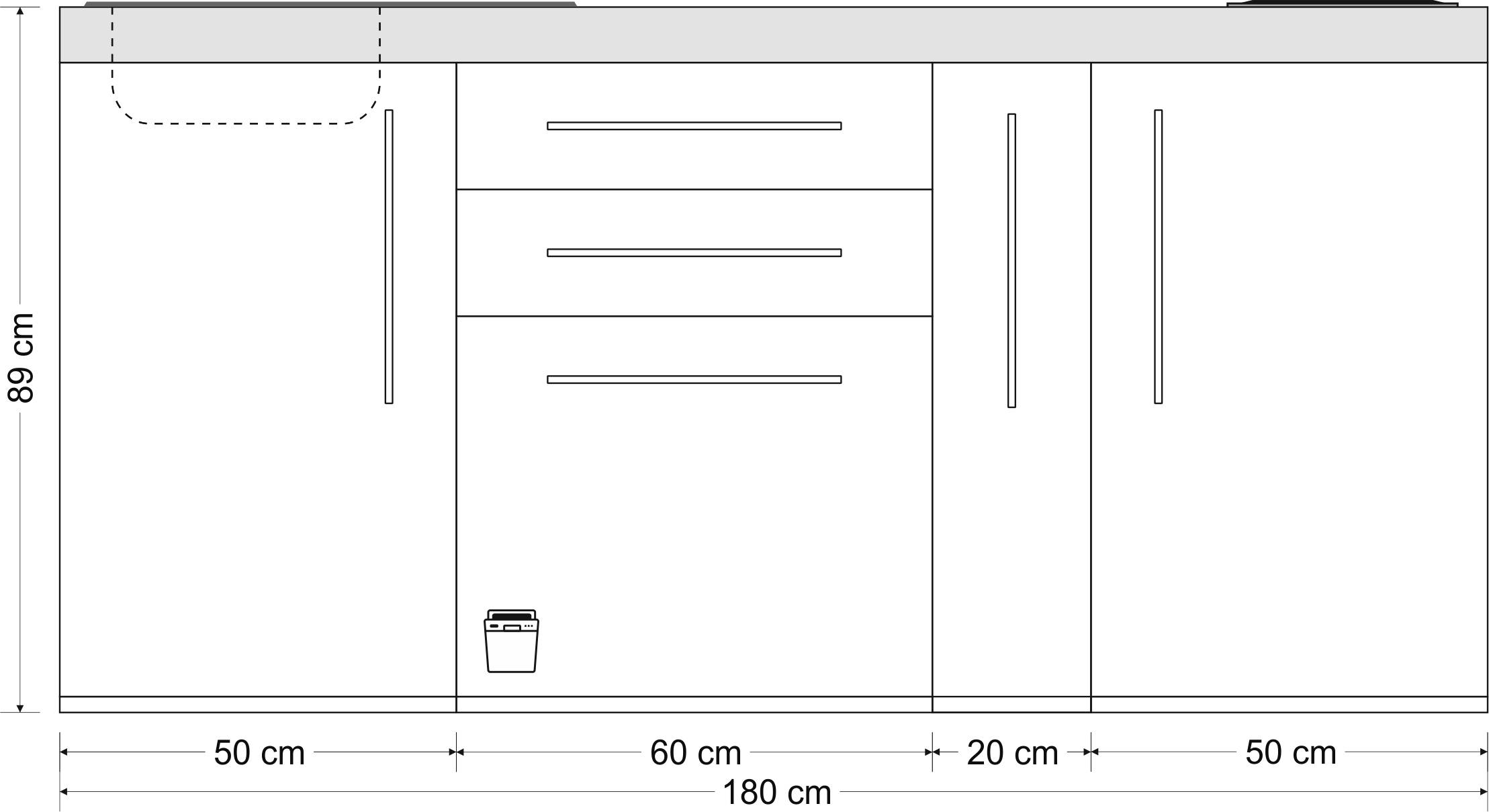 Produktinformationen "Miniküche Premiumline MPGS 180 A - Mit Geschirrspüler & Apothekerauszug"