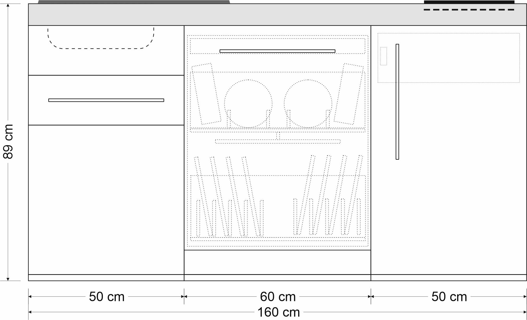 Die Miniküche MPGGS 160 aus der Serie Premiumline ist ein vielseitiges Modell, welches im Büro oder als Singelküche für den kleinen Wohnraum ihre Verwendung findet. Aufgrund ihrer kompakten Abmessungen (B/H/T: 160x89x60cm) eignet sich diese Küche optimal für kleine Nischen oder als offene Büroküche. Der Korpus der Miniküche MPGGS 160 wird aus Pulverbeschichtetem Metall gefertigt und verfügt über doppelwandig innen geschäumte Türen, was eine leichte Reinigung und Langlebigkeit gewährleistet. Die Küche besteht aus einem 500 mm Spülenunterbau mit einer Schublade mit Soft-Close und einer Tür mit Touchverschluzss, einen 600 mm Unterbau (Mitte) mit einem Geschirrspüler, sowie einem 500 mm Unterbau (Außen) mit Türe.