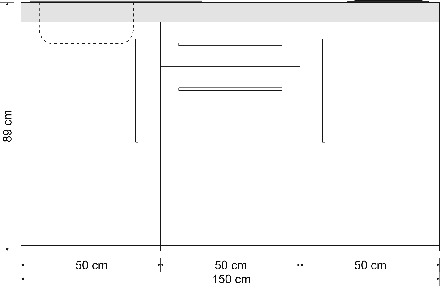 Die Miniküche MP 150 aus der Serie Premiumline ist ein vielseitiges Modell, welches im Büro oder als Singleküche für den kleinen Wohnraum ihre Verwendung findet. Aufgrund ihrer kompakten Abmessungen (B/H/T: 150x89x60cm) eignet sich diese Küche optimal für kleine Nischen oder als offene Büroküche. Der Korpus der Miniküche MP 150 wird aus Pulverbeschichtetem Metall gefertigt und verfügt über doppelwandig innen geschäumte Türen, was eine leichte Reinigung und Langlebigkeit gewährleistet. Die Küche besteht aus einem 500 mm Spülenunterbau mit Tür, einen 500 mm Unterbau (Mitte) mit 1 Schublade mit Soft-Close und einer Türe mit Touchverschluss, sowie einem 500 mm Unterbau (Außen) mit Türe.