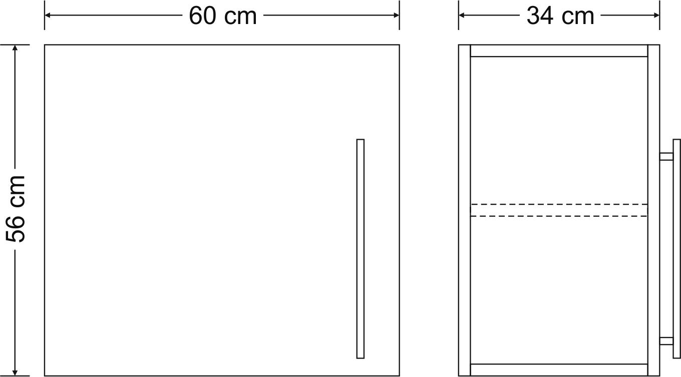 Breite: 60cm Höhe: wahlweise 56cm / 72cm Tiefe: 34cm